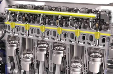 Motores automotivos em Linha, em V, em W, Boxers. São